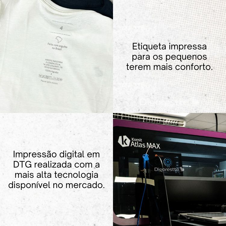 A impressão das nossas estampas são em DTG (Direct-to-garment) que é a impressão direta no tecido realizada com a impressora Kornit Atlas, que utiliza as mais avançadas tecnologias nesse modelo de impressão.