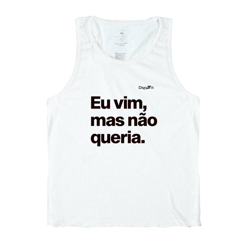 Essa Camiseta Regata diz tudo, mesmo quando você não quer dizer nada. Se você já foi a algum lugar contra a sua vontade, esta camiseta expressa seu sentimento com humor e simplicidade. Use-a quando a sinceridade for a melhor opção, ou apenas para causar risadas. Você veio, mas a vontade ficou em casa!